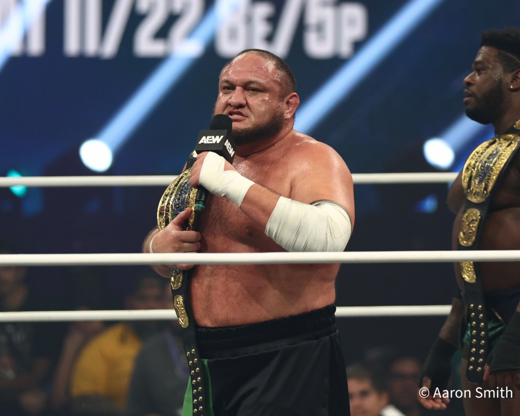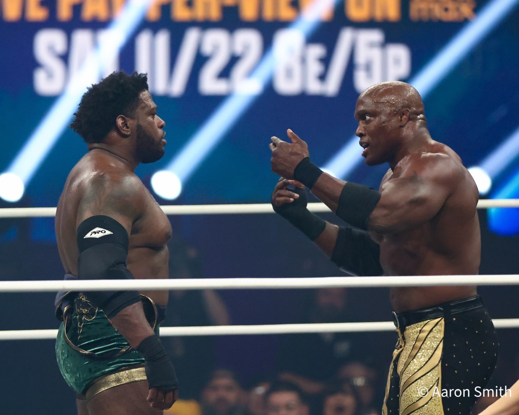 The show opened with a brutal fight for the Trios Titles. Samoa Joe, Powerhouse Hobbs, and Katsuyori Shibata defended against Bobby Lashley, Shelton Benjamin, and MVP. After losing at WrestleDream 2025, The Opps came in meaner than ever. Backstage, Joe declared himself “the hunter, not the hunted,” taking aim at anyone in his path.